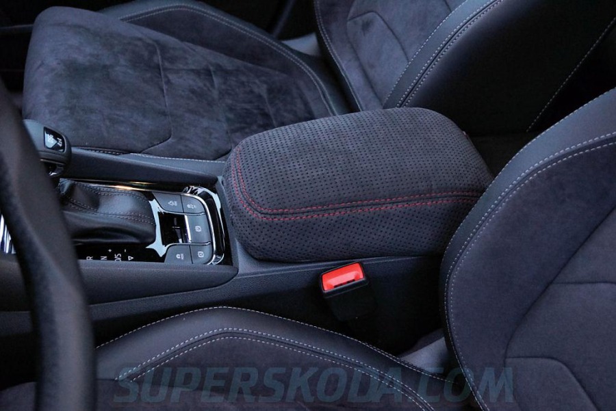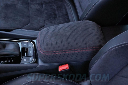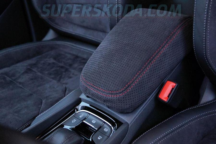 potah loketní opěrky z perforované alcantary pro Škoda Kodiaq - černé nebo červené obšití