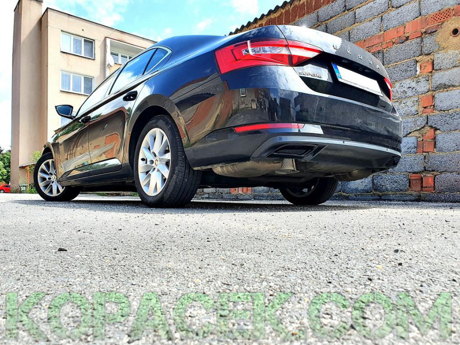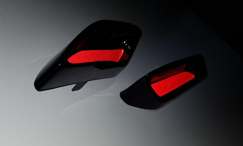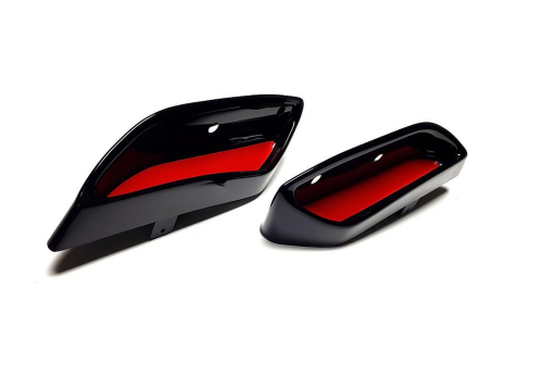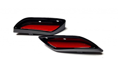 ABS plastové atrapy výfuku - RS style RS230 Glossy black - černá, lesklá pro Škoda Superb III - červené / černé panely uvnitř