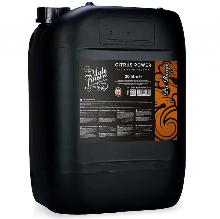 Auto Finesse Citrus Power Bug & Grime Remover (5 L) je PH neutrální čistič hmyzu a špíny neodstraňující vosky a nanopovlaky. Šetrný PH neutrální čistič vám umožní odstranit špínu a hmyz bez nutnosti drhnutí a tím narušení voskové či nano vrstvy. Je bezpečný pro použití na lak, sklo, plasty a další. Auto Finesse Citrus Power je ideálním přípravkem pro péči o ošetřený automobil v případě, kdy klasický autošampón prostě není dostatečně efektivní. Díky vysoké efektivitě je vhodný i pro čištění motorového prostoru a k odstranění mastnoty a v neposlední řadě k oživení vosku. Perfektní k odstranění soli po zimě. Tak jako všechny produkty Auto Finesse, tak i Citrus Power patří mezi profesionální produkty určené pro vyspělé detailery. Díky vysoké efektivitě a lehkosti aplikace ale s tímto přípravkem dosáhne skvělých výsledků i začínající uživatel. Jak použít PH neutrální odstraňovač hmyzu a špíny Auto Finesse Citrus Power Bug&Grime Remover Naneste rozprachem na povrch a ponechte 2 minuty působit.v místech usazené špíny pomožte přípravku jemným štětcem.Opláchněte proudem vody. Poznámka: Citrus Power je pH neutrální přípravek, proto není tak silný, jako agresivní alkalické čističe. Díky tomu je šetrný k voskům a sealantům, možné použití i na chromové díly, díly jen leštěné, apod. Máte-li vůz prozatím neošetřený, bude zapotřebí postup pravděpodobně jednou zopakovat, či pomoci přípravku v efektivitě jemným štětcem. Případně místo Citrus Power použít Auto Finesse Dynamite. Jeho přednosti oceníte hlavně v případě, kdy máte vůz ošetřen voskem, keramickou ochranou či sealantem. Jeho schopnost odlepit hmyz a nečistotu od povrchu je v tomto případě bezkonkurenční, navíc bez rizik oslabení ochran. Díky svým vlastnostem i obnovuje činnost již zanesených ochran. Díky schopnosti hloubkového čištění i obnovuje hydrofobitu již zdánlivě nefunkčních ochran. Náš Tip: Luxusní přípravek pro bezkontaktní mytí ošetřených vozů = nulové riziko oslabení ochran a poškrábání. Objem: 20000 mlHmotnost: 21.5 kg Oficiální webová prezentace Cena za 1ks