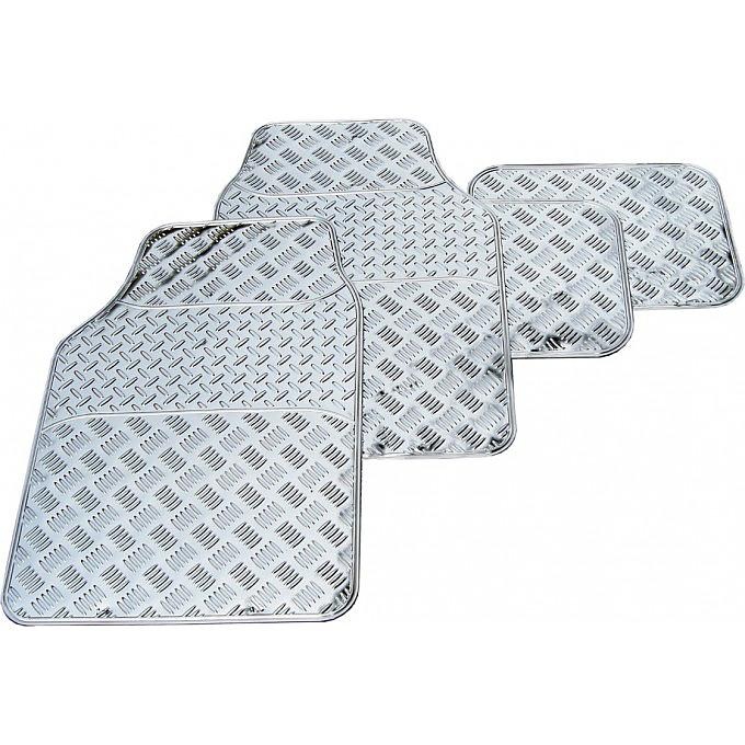 Autokoberce imitace alu - barva stříbrná, sada 4ks pro celé vozidlo, univerzální rozměr cca: přední koberce šířka 44,5cm, délka 66cm, zadní koberce šířka 40cm, délka 30cm, spodní strana protiskluzová úprava, materiál guma.