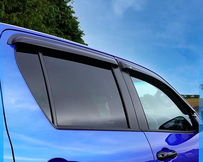 sada (4ks) venkovních, velkých, samolepících ofuků oken pro Toyota HILUX VIII, od r.v. 2016->