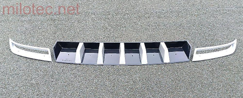 • Difuzor je vylepšen výstupky z materiálu ABS stříbrný matný - stejný materiál jako atrapy výfuku (součástí balení)