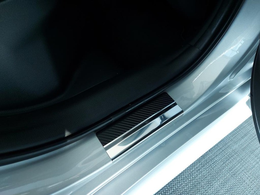 Nerezové kryty prahů polepené karbonovou folií pro Mazda 2 hybrid, od r.v. 2022 -
