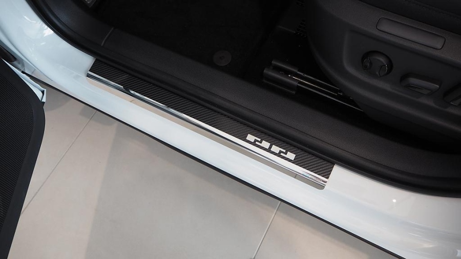 Nerezové kryty prahů polepené karbonovou folií pro Seat Ateca, od r.v. 2017 -