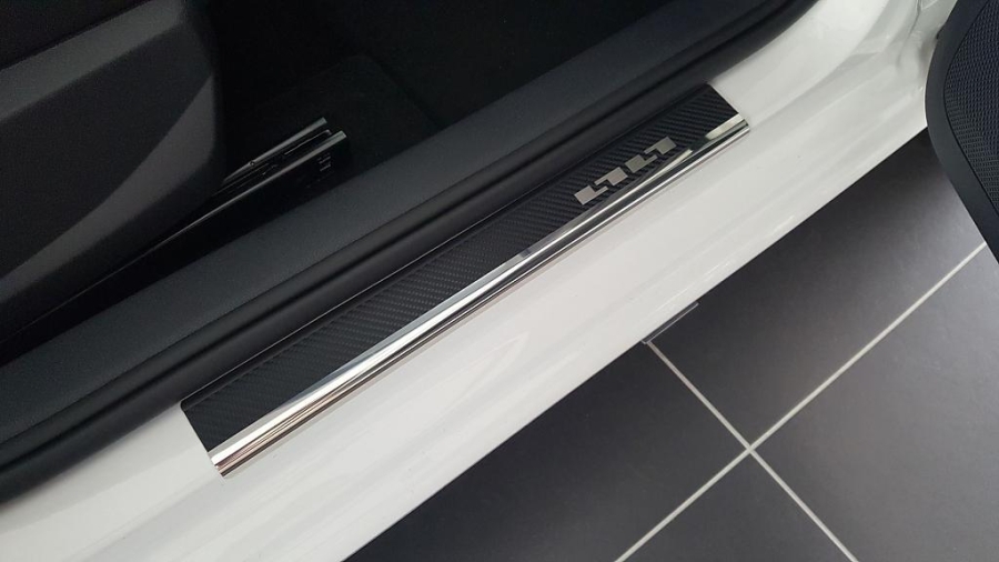 Nerezové kryty prahů polepené karbonovou folií pro SEAT IBIZA V 5 dvéř.