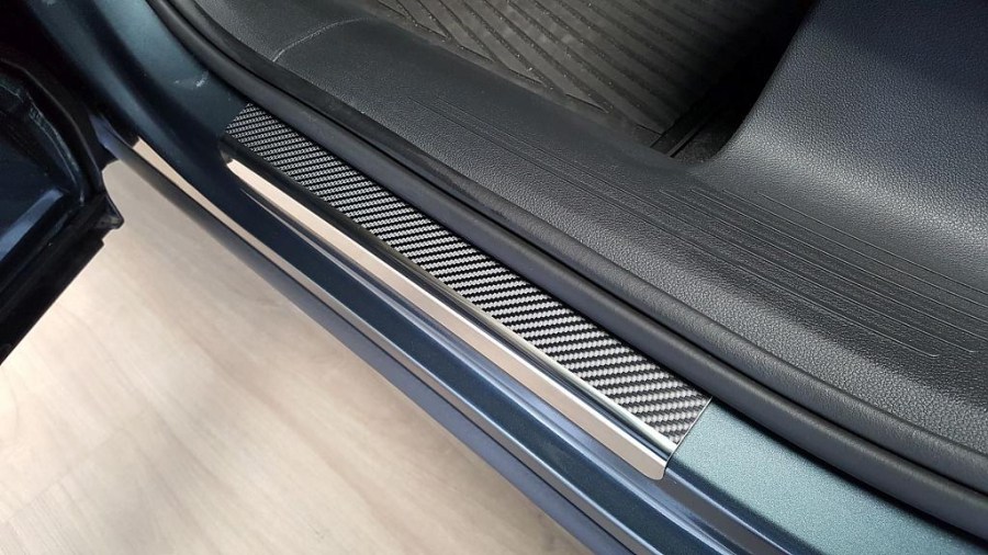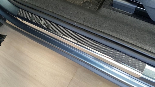 Nerezové kryty prahů polepené karbonovou folií pro Škoda Kodiaq, od r.v. 2017-