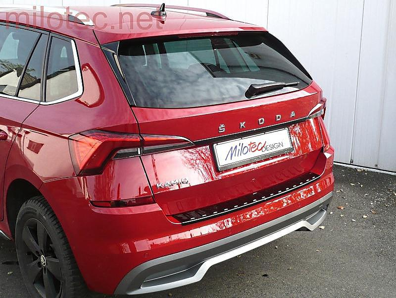 ABS plastová lišta nad zadní SPZ v černém lesklém provedení pro Škoda Kamiq, od r.v. 2019 ->