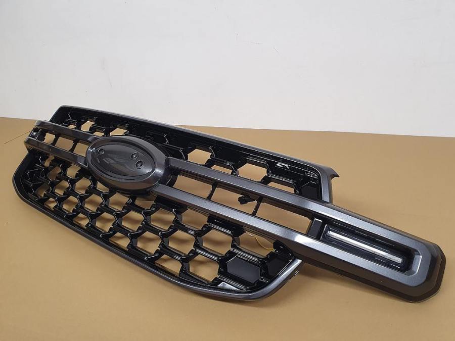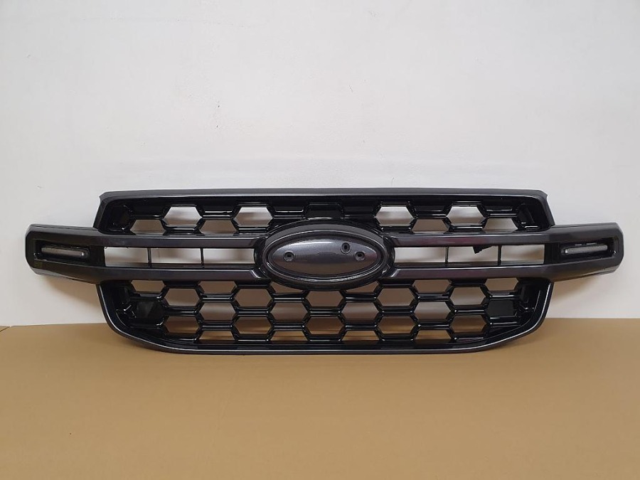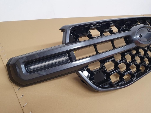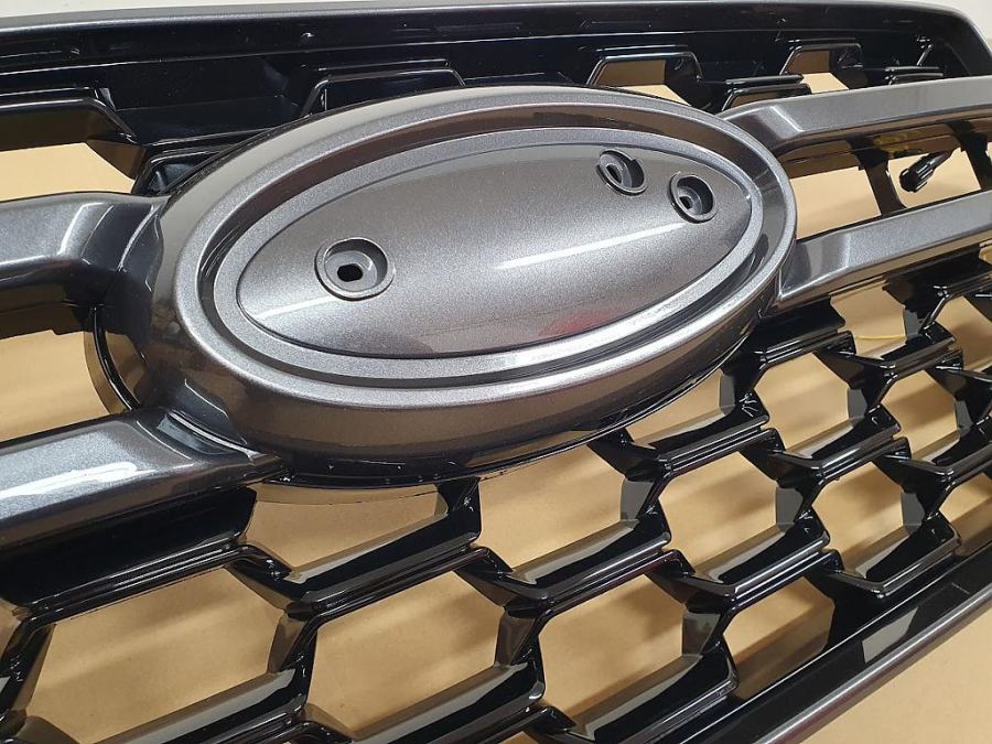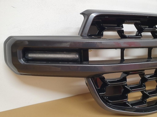 plastová maska pro Ford Ranger II (P703), od r.v. 2022->> / XLT / SPORT / WILDTRAK, včetně LED, provedení černý lesk / šedá středová lišta