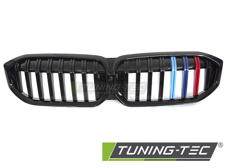 Sportovní ABS maska (ledvinky) pro BMW G20 / G21 LCI Facelift, od r.v. 2022-, černý lesk s trikolórou
