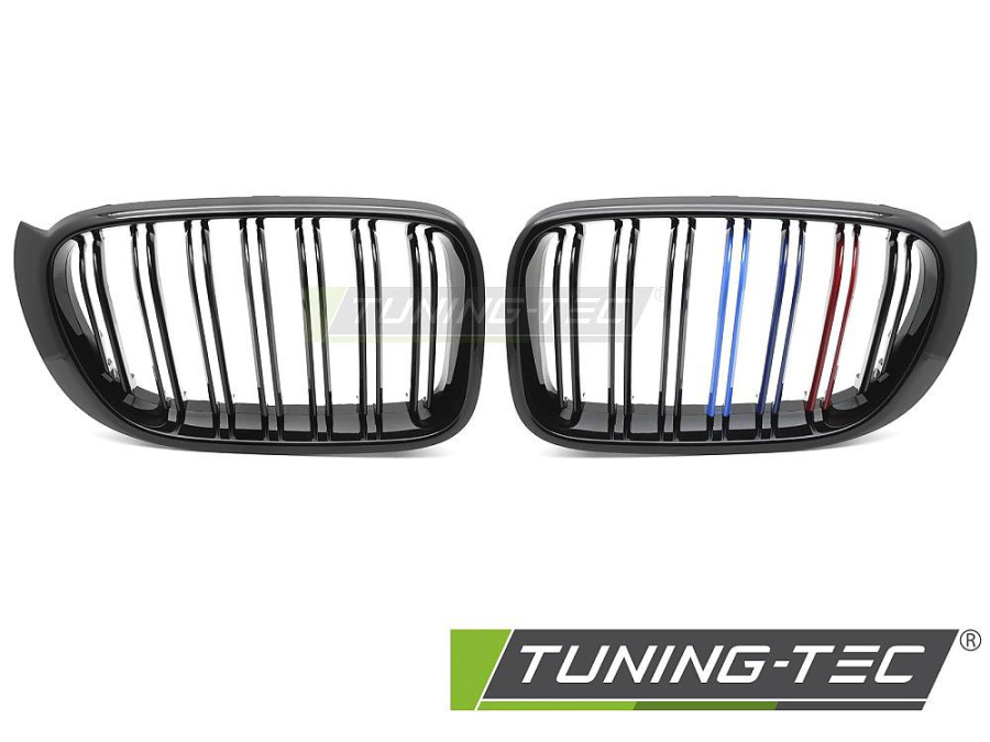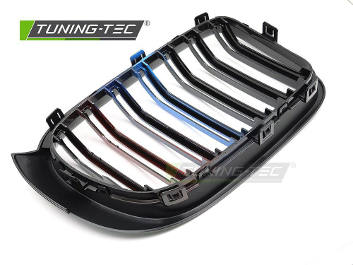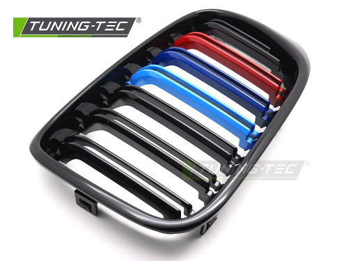Sportovní ABS maska (ledvinky) pro BMW X3 F25 LCI, r.v. 2014-2017 / X4 F26, r.v. 2014-2018, černý lesk s trikolórou