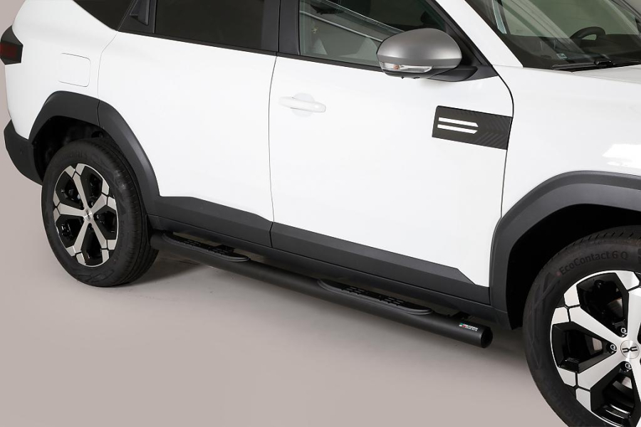 Nerezový boční rám - průměr 76mm s černými plastovými stupátky pro Dacia BIGSTER, od r.v. 2025->>
