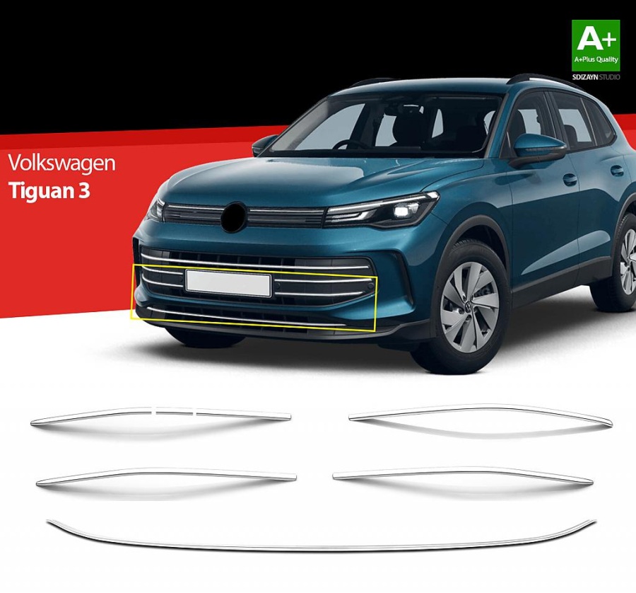 sada nerez-chromových lišt do předního nárazníku pro Volkswagen Tiguan III, od r.v. 2024->