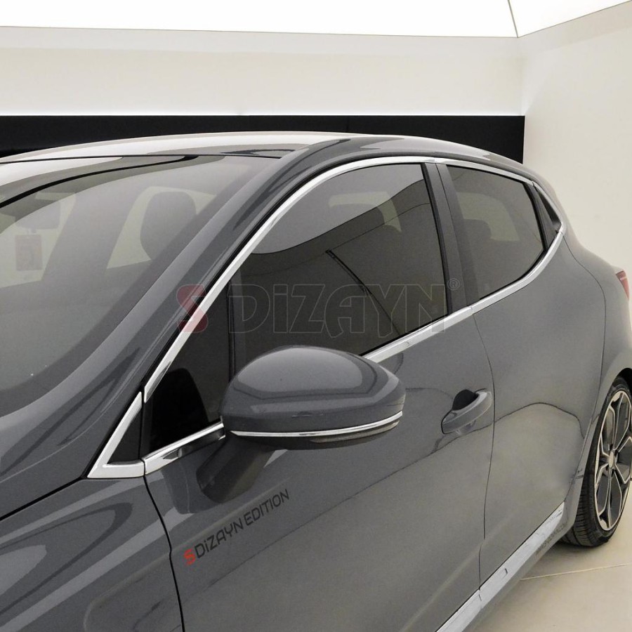 Nerez - chrom lišty (12 ks) kolem oken bočních dveří pro Renault Clio V, od r.v. 2019 ->