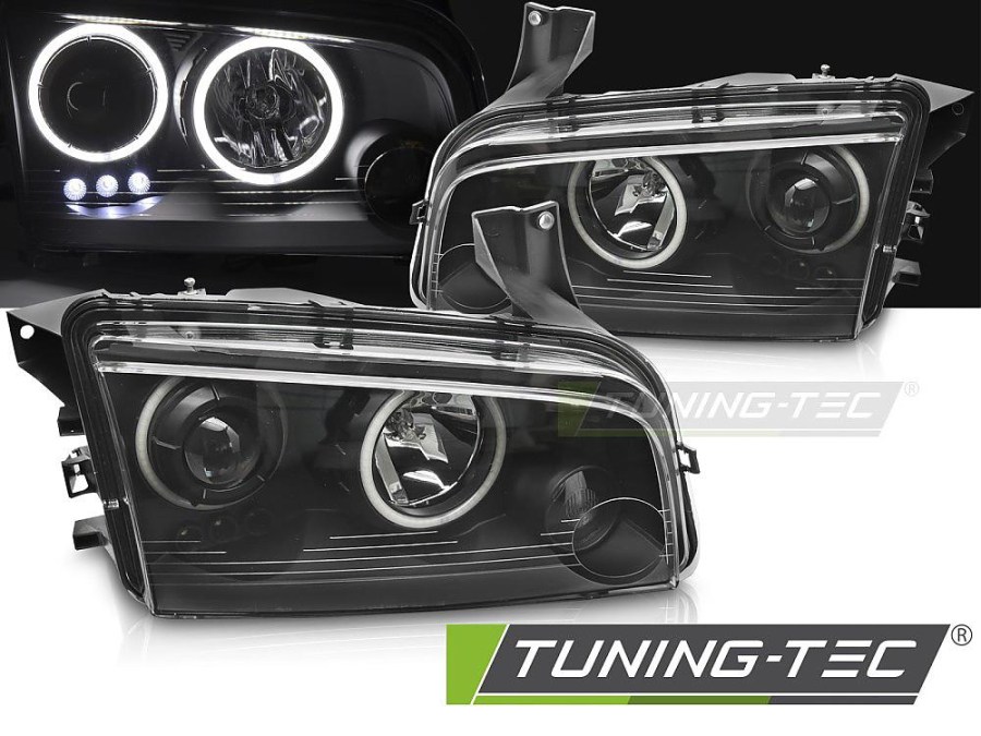 Přední světla angel eyes CCFL Dodge Charger LX černá, r.v. 2006 - 2010