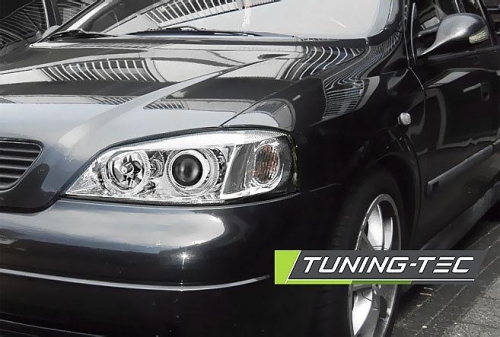 přední čirá světla s Angel Eyes pro Opel Astra G r.v. 98-04 , chrom provedení