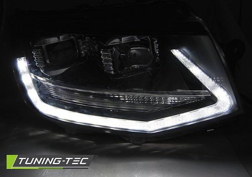 Přední světla pro Volkswagen T6, černé, r.v. 2015, včetně homologovaného LED denního svícení - homologace R87