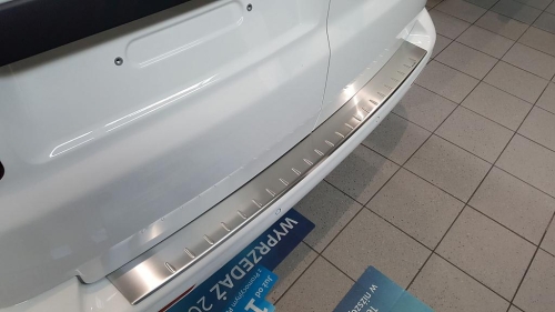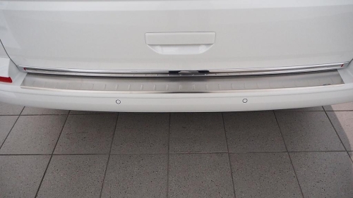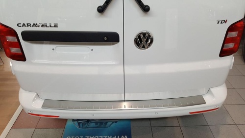 Profilovaný a embosovaný nerez kryt prahu zadních dveří pro VOLKSWAGEN T6 TRANSPORTER / MULTIVAN / CARAVELLE, od r.v. 2015-