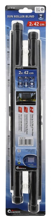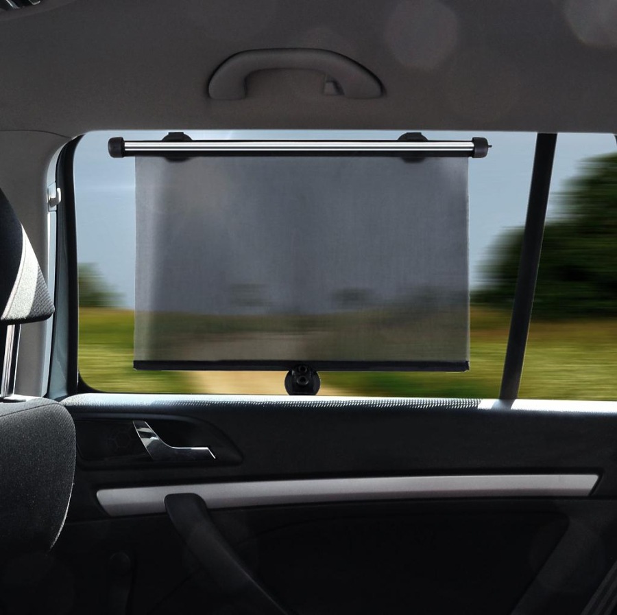 Určeno k montáži na zadní boční okna automobilu, připevnění nasunutím na horní hranu bočního okna, nebo přiloženými přísavkami.