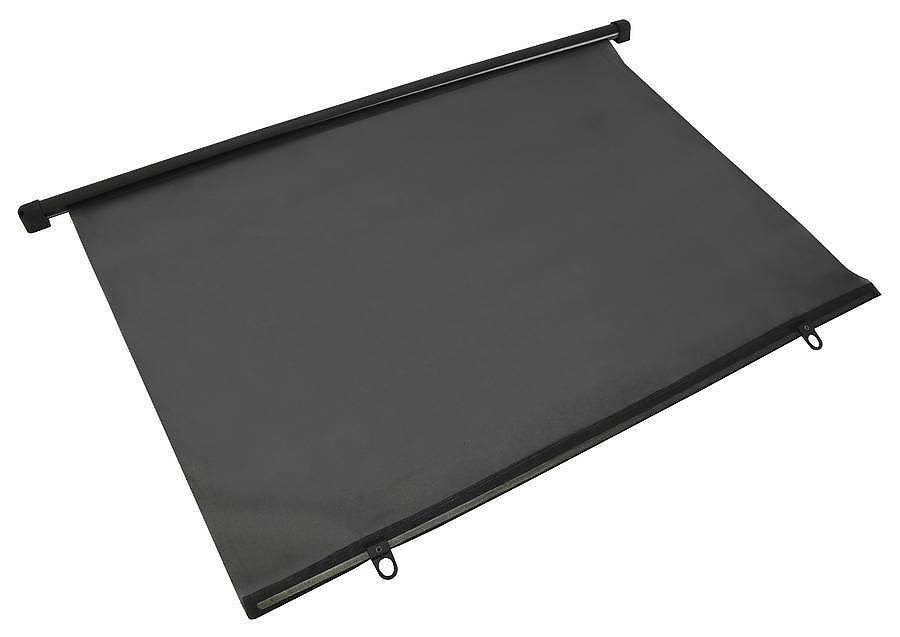 Sluneční roletka určená k montáži na zadní sklo osobního automobilu. Šíře 90cm, lichoběžníkový tvar. Způsob perforace materiálu zajišťuje absorpci cca 70% slunečních paprsků a zároveň umožňuje řidiči maximum viditelnosti jak ve dne, tak i v noci. Barva černá.