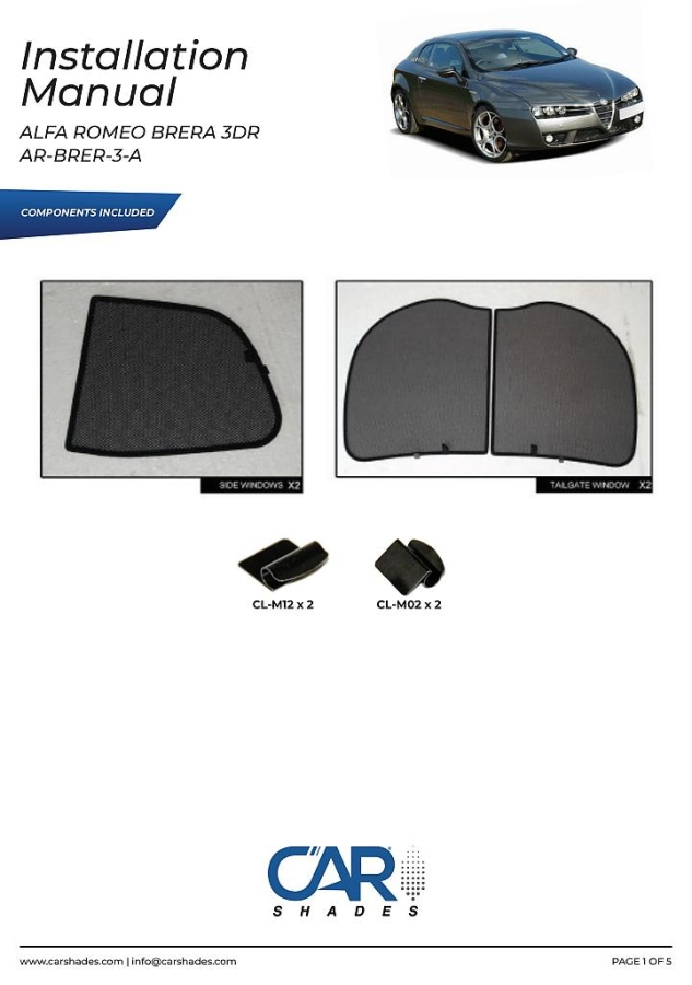 kompletní sada (4 ks zadní + zadní boční okna) slunečních clon CarShades pro ALFA ROMEO Brera 3-dvéř. coupé, r.v. 2006 - 2010