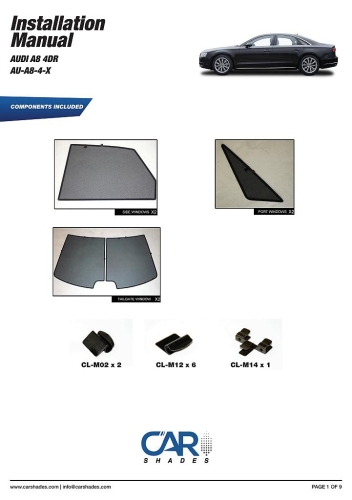 Sluneční clony CarShades pro AUDI A8/S8 4-dvéř. sedan r.v. 1994-2002; komplet sada: 6ks