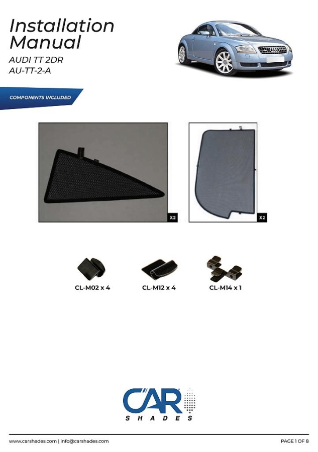 Sluneční clony CarShades pro AUDI TT 2-dvéř. coupé r.v. 1998-2003; komplet sada: 4ks
