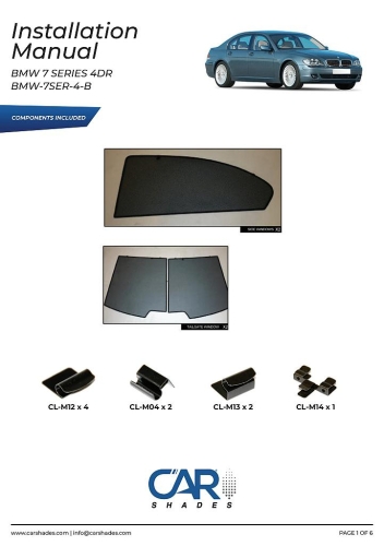 kompletní sada (4 ks zadní + zadní boční okna) slunečních clon CarShades pro BMW Serie 7 E65 4-dvéř. sedan, r.v. 2001-2008
