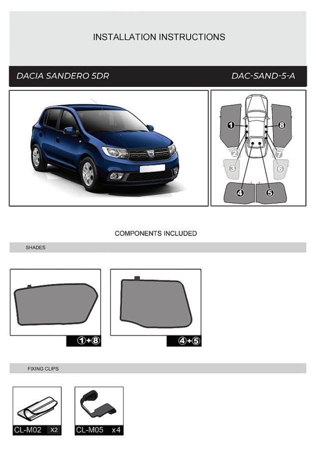 Sluneční clony CarShades pro DACIA Sandero 5-dvéř. hatchback r.v. 2008-2012; komplet sada: 4ks