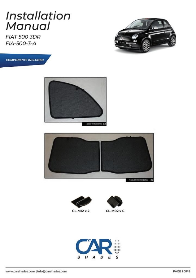 Sluneční clony CarShades pro FIAT 500 3-dvéř. hatchback od r.v. 2007-; komplet sada: 4ks
