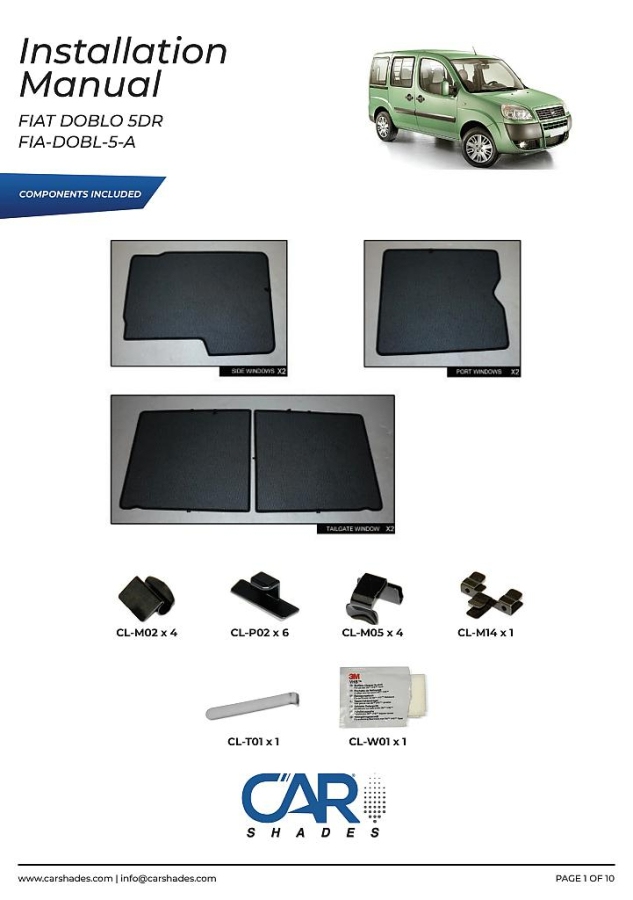 Sluneční clony CarShades pro FIAT Doblo 5-dvéř. r.v. 2001-2010; komplet sada: 6ks