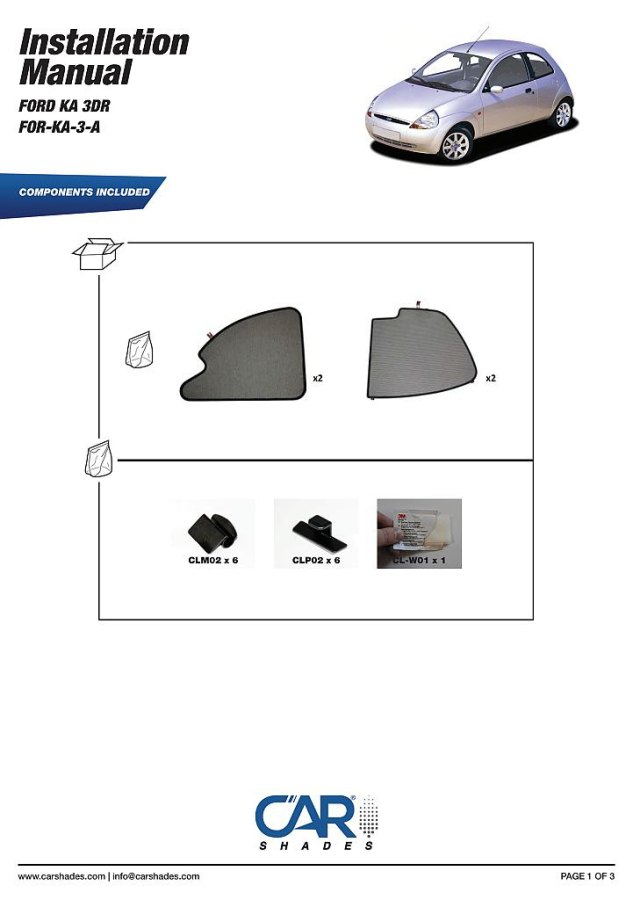 Sluneční clony CarShades pro FORD Ka I 3-dvéř. hatchback r.v. 1996-2008; komplet sada: 4ks