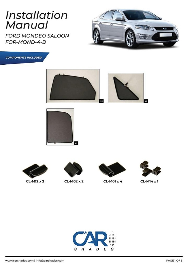 Sluneční clony CarShades pro FORD Mondeo IV 4-dvéř. hatchback/sedan r.v. 2007-2014; komplet sada: 6ks