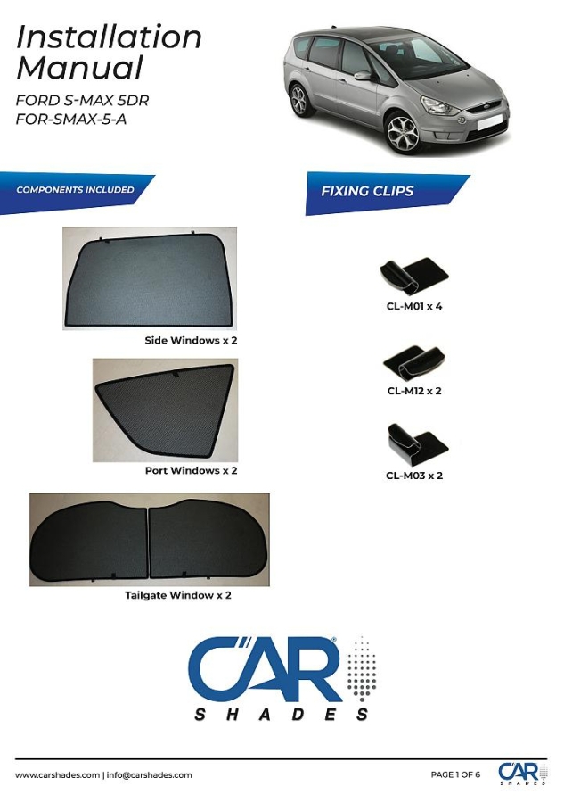 Sluneční clony CarShades pro FORD S-MAX 5-dvéř. mpv od r.v. 2006-; komplet sada: 6ks