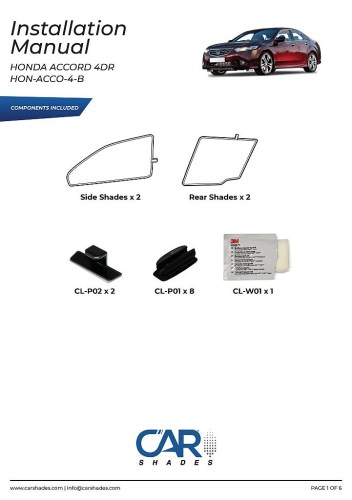 kompletní sada (4 ks zadní + zadní boční okna) slunečních clon CarShades pro HONDA Accord VIII 4-dvéř. sedan, r.v. 2008 - 2014