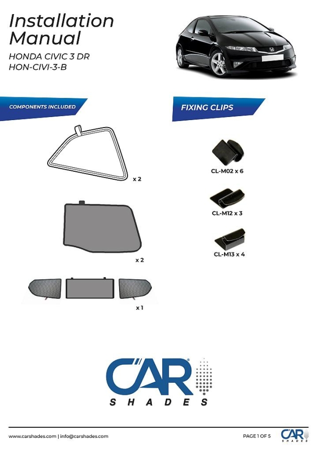 Sluneční clony CarShades pro HONDA Civic VIII 3-dvéř. hatchback od r.v. 2006-; komplet sada: 4ks