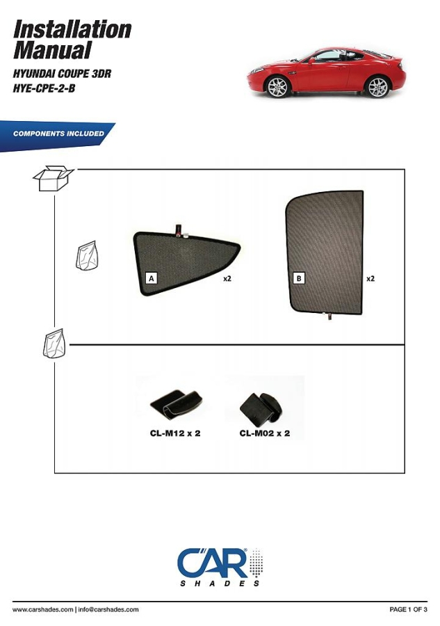 Sluneční clony CarShades pro HYUNDAI Coupé II 3-dvéř. coupé r.v. 2001-2009; komplet sada: 4ks