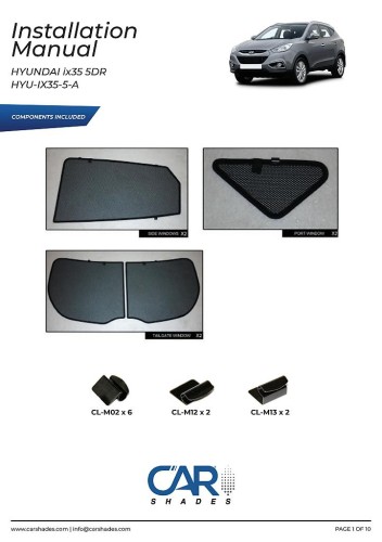 kompletní sada (6 ks zadní + zadní boční okna) slunečních clon CarShades pro HYUNDAI ix35 5-dvéř. hatchback, r.v. 2010 - 2015