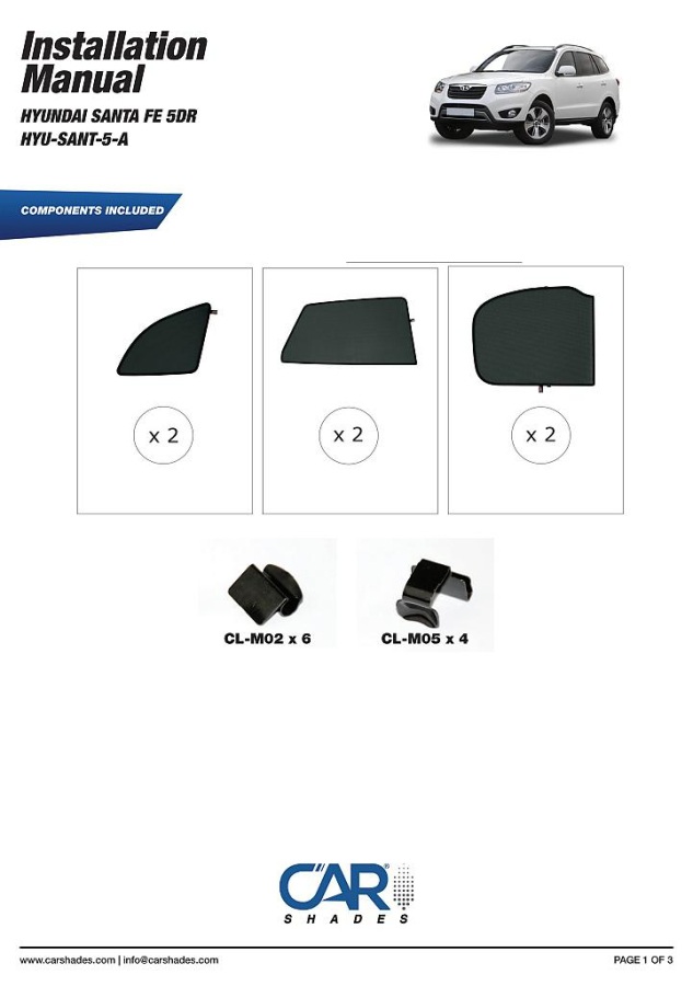 Sluneční clony CarShades pro HYUNDAI Santa Fe 5-dvéř. r.v. 2006-2012; komplet sada: 6ks