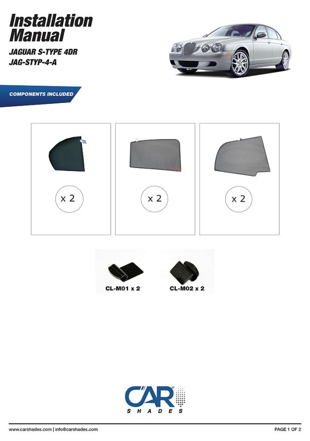 Sluneční clony CarShades pro JAGUAR S-Type 4-dvéř. sedan r.v. 1998-2002; komplet sada: 6ks
