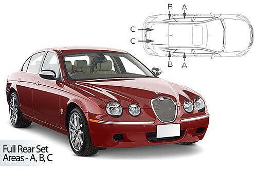 kompletní sada (6 ks zadní + zadní boční okna) slunečních clon CarShades pro JAGUAR S-Type 4-dvéř. sedan, r.v. 1999 - 2008