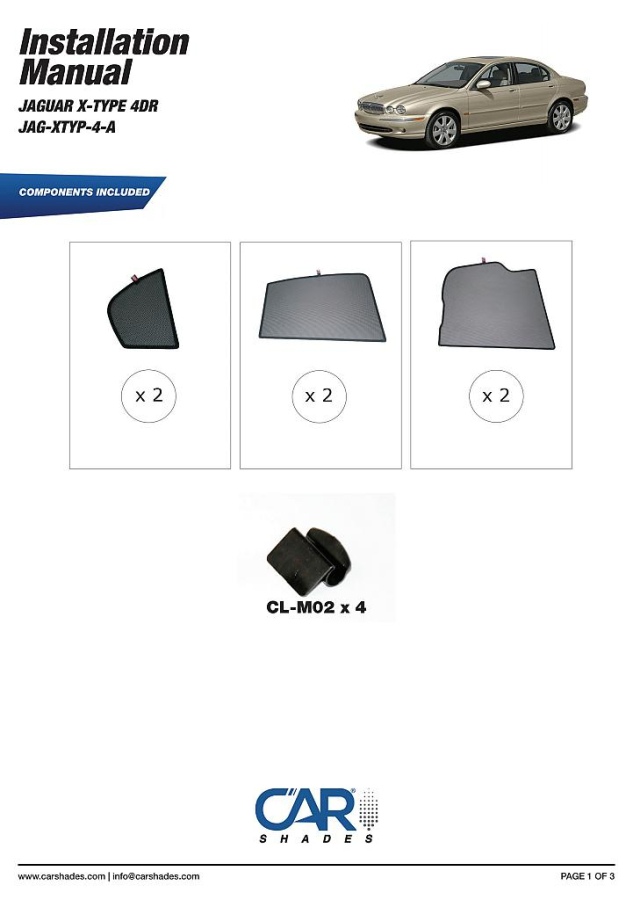 kompletní sada (6 ks zadní + zadní boční okna) slunečních clon CarShades pro JAGUAR X-Type 4-dvéř. sedan, r.v. 2001 - 2004
