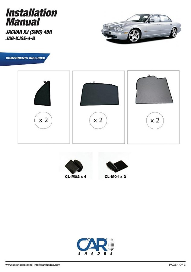 Sluneční clony CarShades pro JAGUAR XJ 4-dvéř. (krátký rozvor) sedan r.v. 2003-2010; komplet sada: 6ks