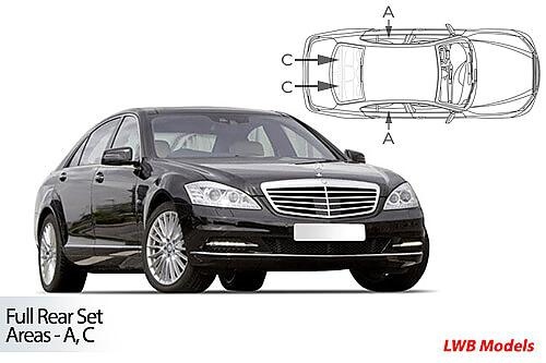 kompletní sada (6 ks zadní + zadní boční okna) slunečních clon CarShades pro MERCEDES-BENZ Class S W221 4-dvéř. sedan, r.v. 2006 - 2013