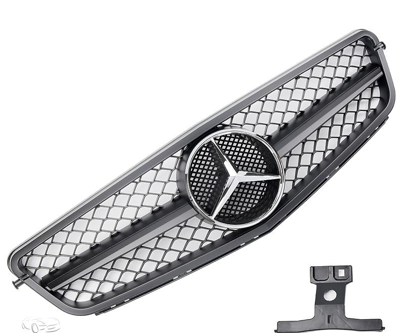 sportovní ABS plastová maska C63 AMG vzhled pro Mercedes C Class W204 / S204 / C204, r.v. 2007 - 2014 (nepasuje pro C63 AMG), barevné varianty loga