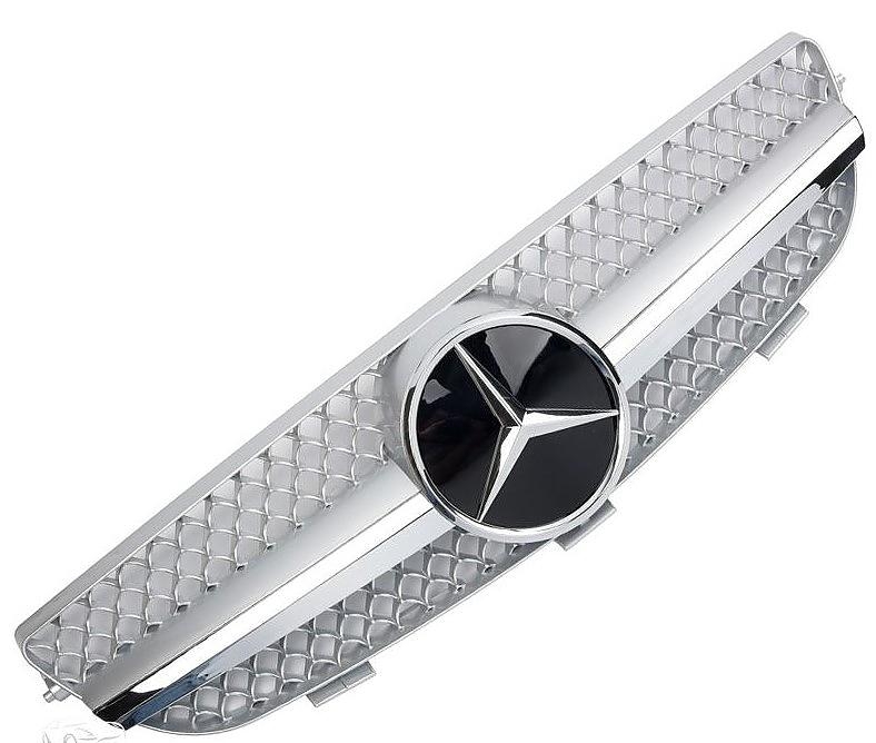 sportovní ABS plastová maska pro Mercedes CLK W209 / C209 / A209, r.v. 2002 - 2009, barevné varianty loga